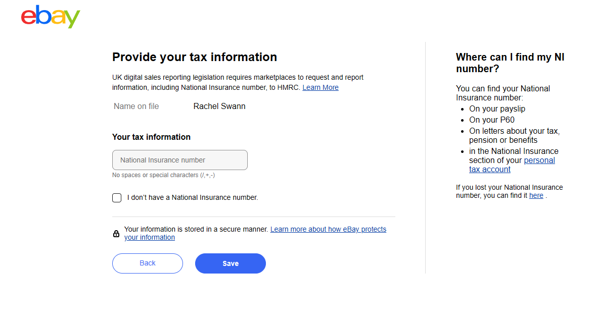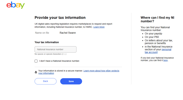 This means platforms like eBay are now actively collecting data such as your NI number, gross sales, and number of transactions—even for personal seller accounts. eBay has already begun showing messages urging sellers to enter tax details to remain compliant and avoid account restrictions.